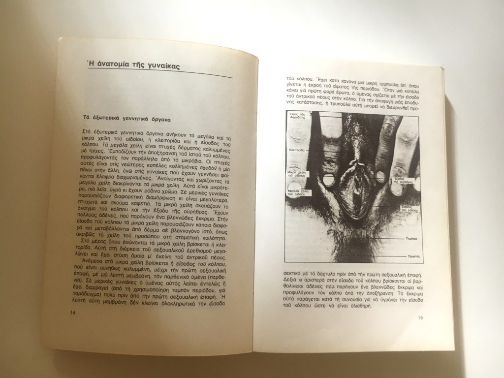 19:00 | Στην Ασκληπιού, στους πάγκους με τα μεταχειρισμένα βιβλία, τέσσερις ημέρες πριν την δεύτερη απαγόρευση κυκλοφορίας λόγω της πανδημίας, 40 χρόνια μετά την ελληνική έκδοση από τις εκδόσεις οδυσσεας, βρίσκω το βιβλίο-εγχειρίδιο «Η γυναίκα και το κορμί της». Αν και γραμμένο από την ΟΜΑΔΑ ΓΥΝΑΙΚΩΝ ΔΑΝΙΑΣ, η ελληνική έκδοση έγινε σε μετάφραση και επιστημονική θεώρηση δύο αντρών. Το κεφάλαιο «Το να είμαστε λεσβίες» ξεκινά με την ακόλουθη παράγραφο: