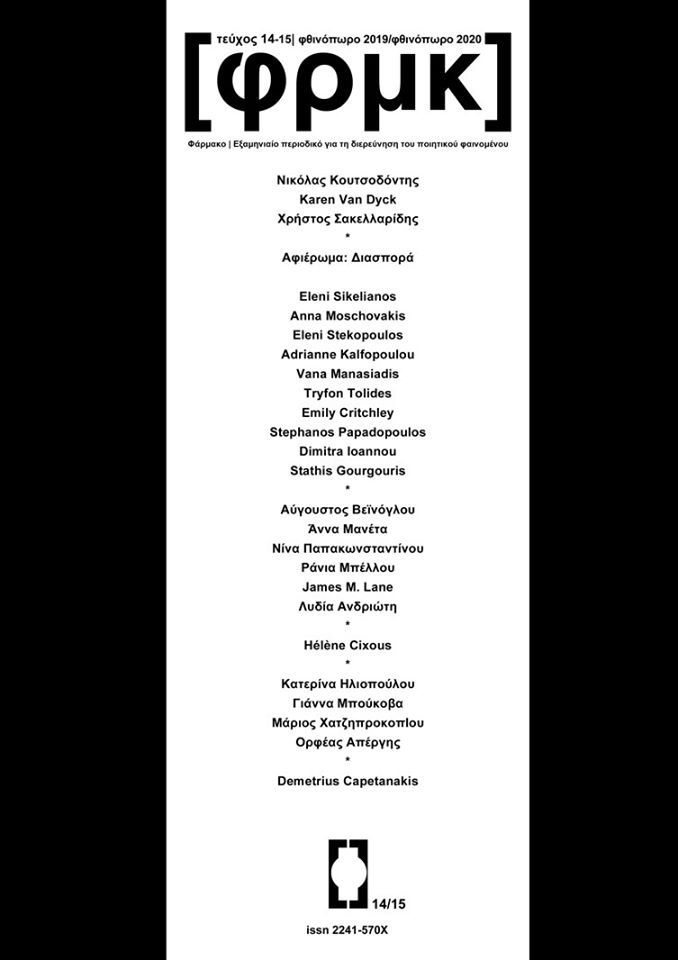 • Πέντε ποιήματά μου τα οποία μετέφρασα από τα αγγλικά δημοσιεύονται στο τεύχος «Διασπορά» του περιοδικού ΦΑΡΜΑΚΟ (Δεκέμβριος 2019). To ποίημα ΟΙ ΑΙΩΝΕΣ ΑΠΕΧΟΥΝ ΠΟΛΥ ΑΠΟ ΤΟ ΝΑ ΕΙΝΑΙ ΟΡΙΣΤΙΚΑ ΚΕΙΜΕΝΑ αναδημοσιεύεται από το έντυπο τεύχος διαδικτυακά: https://frmk.gr/2020/06/10/dimitra-ioannou-t/?fbclid=IwAR3ceednbx_d4tJGLff1Lmb_sfKKGr3SQNMcI0VN2JH6Wt-y4h3z66zhy8w