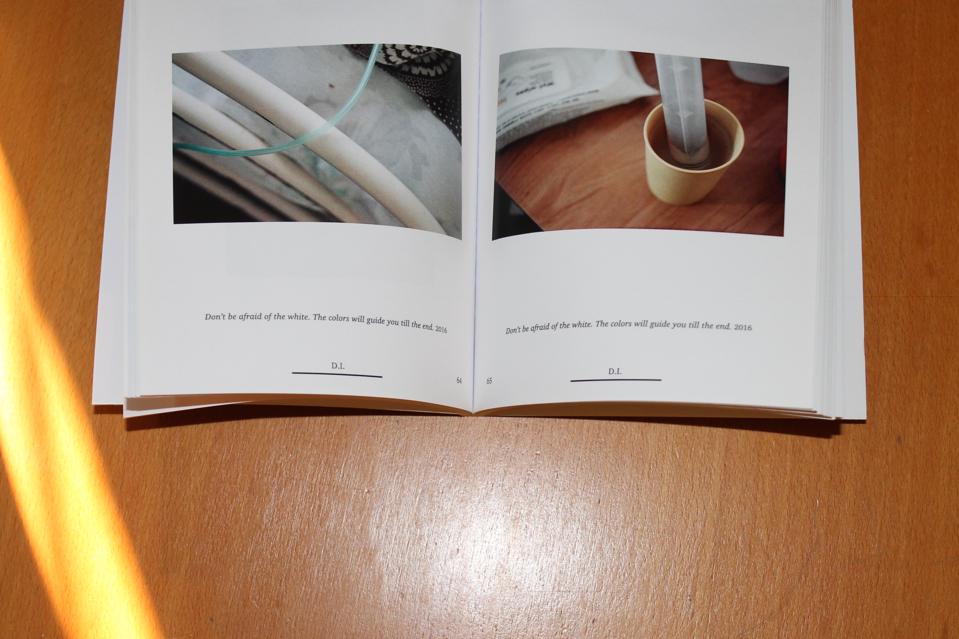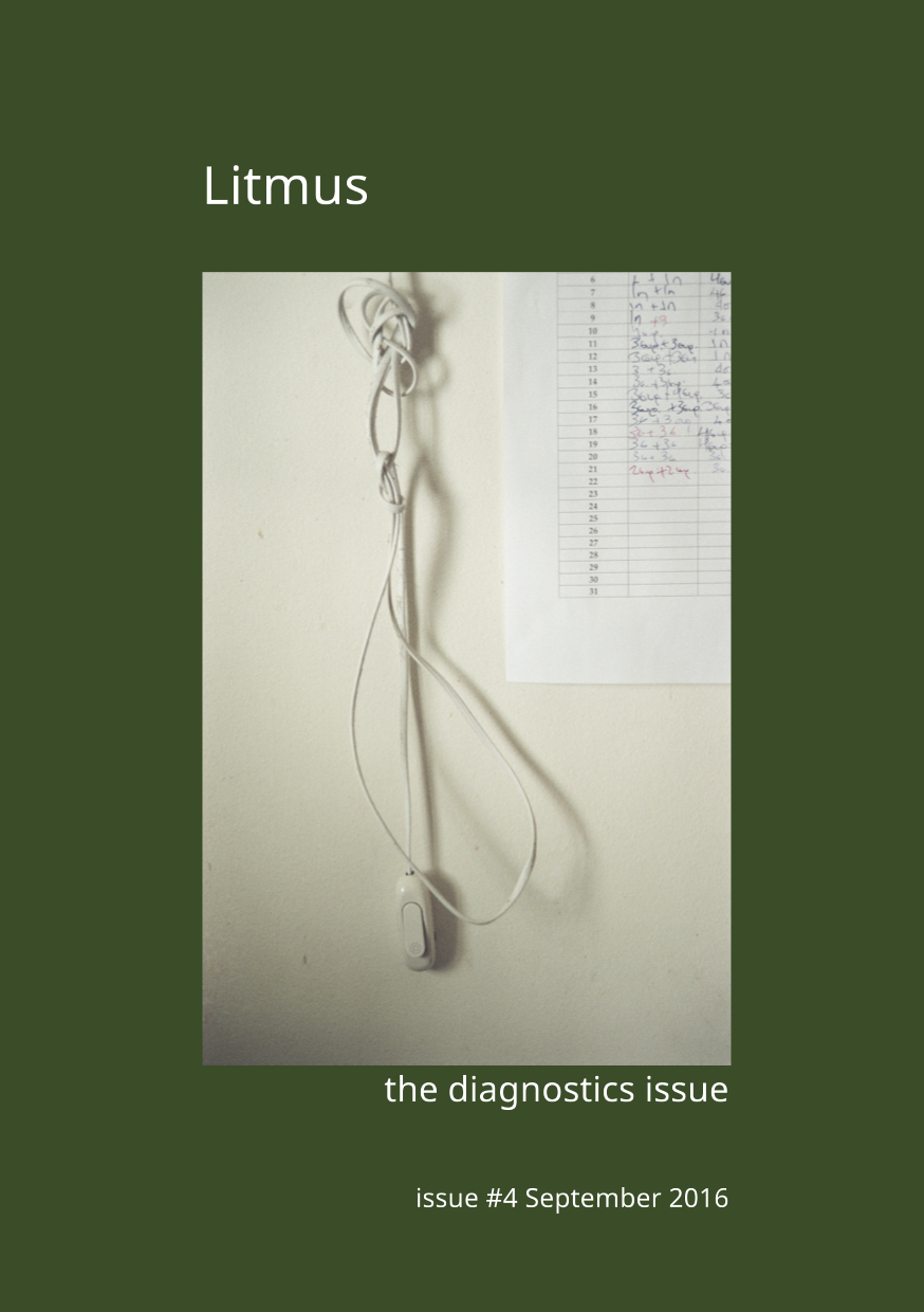 Η φωτογραφική αφήγηση «Don’t Be Afraid of The White. The Colors Will Guide You Till The End.» δημοσιεύεται στο λογοτεχνικό περιοδικό Litmus: the diagnostics issue (Οκτώβριος 2016).
