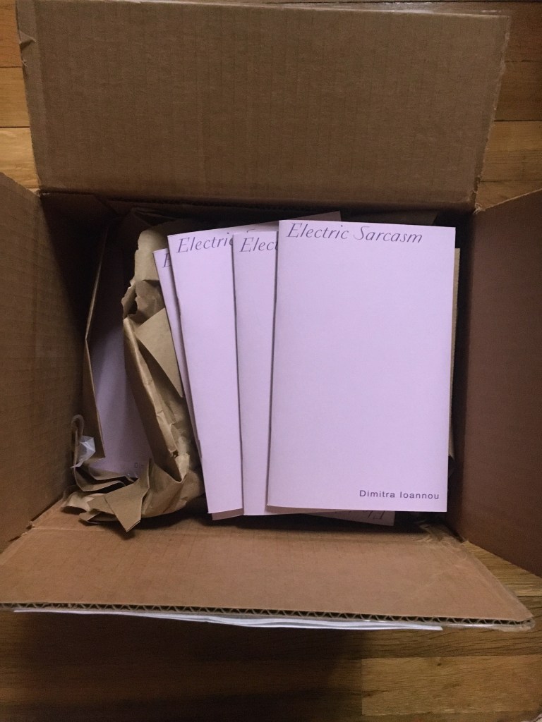 Many writers are called ‘relentless.’ Dimitra Ioannou truly deserves this accolade. Electric Sarcasm is a book of urgent and intelligent address. This work is shaken by incredulity at the falsifying systems, and systematic falsifications, which immerse us no less in financial precarity than in weaponized plague. Yet it is shaken, and shakes, like an earthquake. With each prose piece, etymological transformation, or isolate ritual, you feel the foreshock of poem as event and anticipate the aftershock of poem as analysis even while you are in the shocking midst of poem as anger and lament. The plurilingualism and etymological wit by which English, French, and Greek flow into each other becomes a holding, if not a healing, for Ioannou is able to invoke the competing political and cultural freight and status of each language’s worldview. Her text moves on with the devastating nimbleness of a being that knows what it is to live well and with a sense of continuity, yet which feels compelled to overwrite itself as a fragment, sometimes in order to make durational sense of this absurd moment of competing histories and precarious futures. This book is darkly enjoyable, abyssal, and clarifying. I am in awe of how it bodies forth our time. – Vahni Capildeo